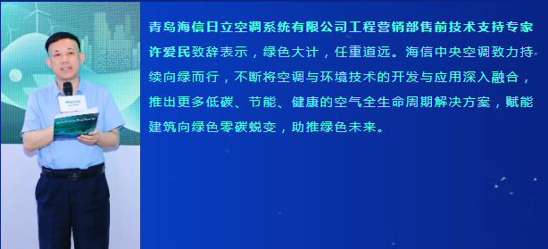 暖通空调低碳节能论坛上,青岛海信日立空调系统有限公司客户支持部高级技术支持经理 马君保以《双碳背景下海信中央空调低碳解决方案探索与实践》为主题,详细介绍了海信磁悬浮单冷及热泵机组改造案例中大幅节能降碳的应用效果;海信正压液浮无油变频离心机,中高温热泵的产品优势;海信ECO-B节能控制平台特点;以及在可再生能源利用方面,海信光伏直驱多联机系统,全天候安全运行,降低能量损耗,更好实现低碳甚至零碳运行的优势……从多角度阐述深入分享国品“低碳化+数字化”的领先研创。