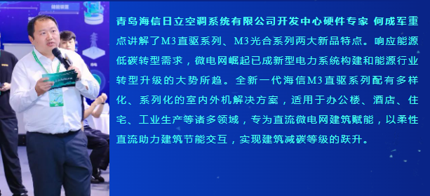 展会期间,海信中央空调重磅举行M3直驱系列、M3光合系列新品发布会,多位嘉宾出席,共见“光”芒,共“碳”未来。