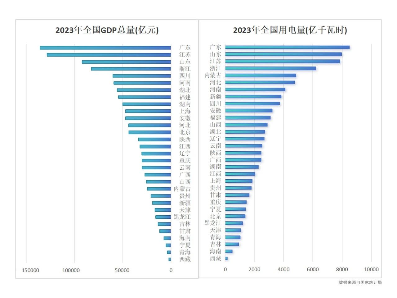 据国家统计局数据显示,2023年,广东全社会用电量达到8502亿千瓦时,广东GDP总量首次突破13万亿元,平均1度电造出15元GDP。