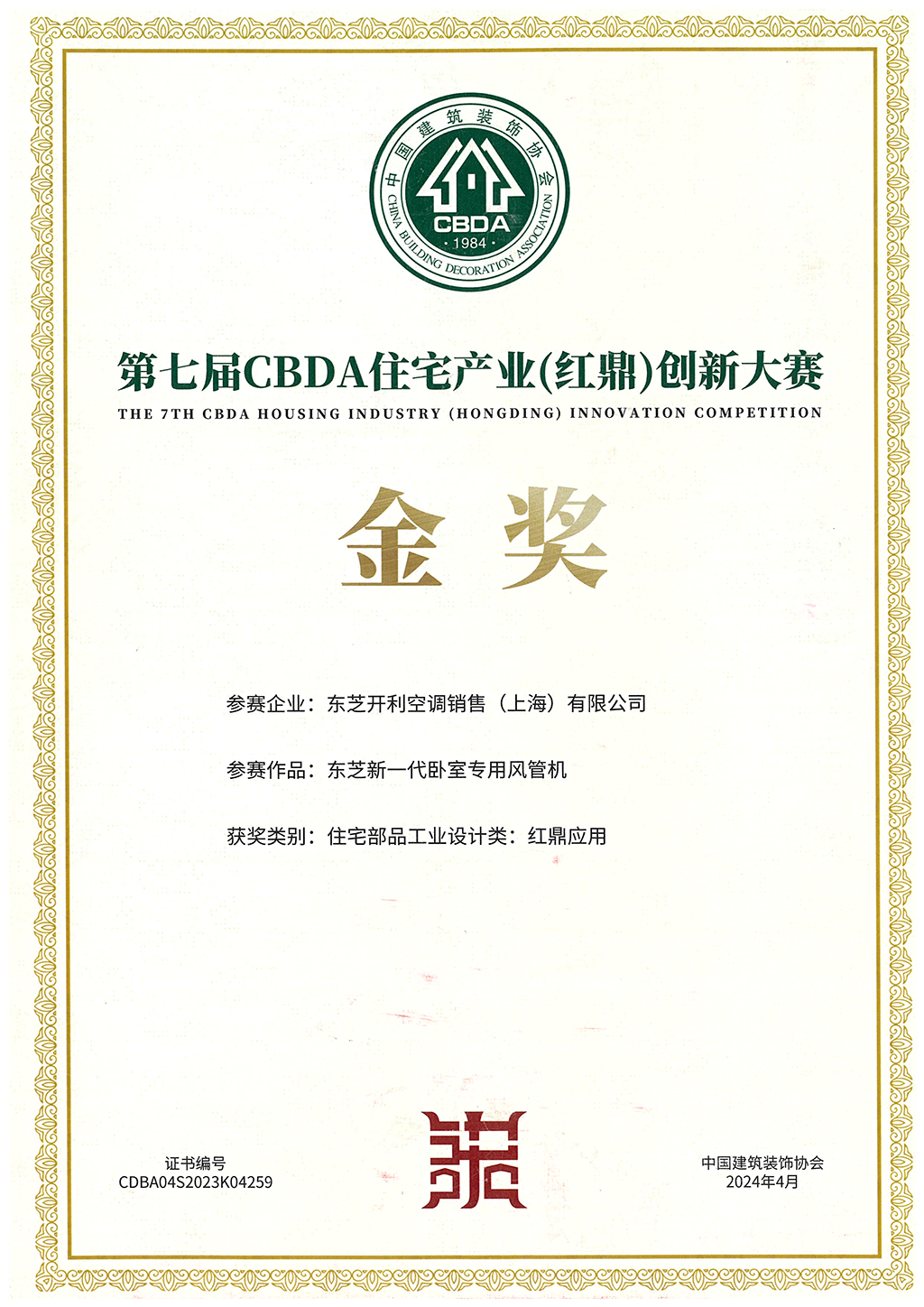 近日,由中国建筑装饰协会住宅装饰装修和部品产业分会主办的2023-2024住宅产业年会隆重举行,会上发布了第七届CBDA住宅产业(红鼎)创新大赛结果,东芝空调新一代卧室专用风管机问鼎住宅部品工业设计类——红鼎应用金奖。