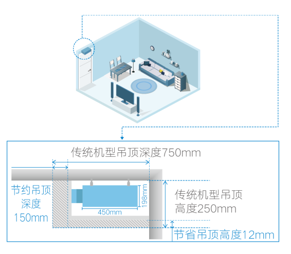 释放更多吊顶空间,舒适不压抑