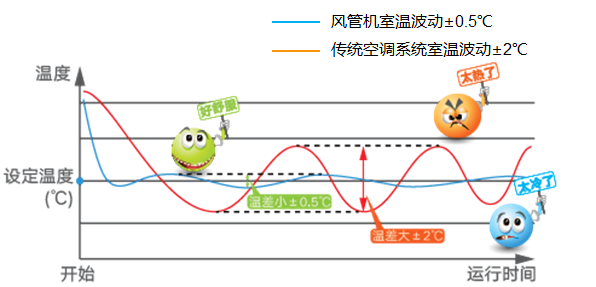 温度波动控制土0.5℃,室内温度波动小