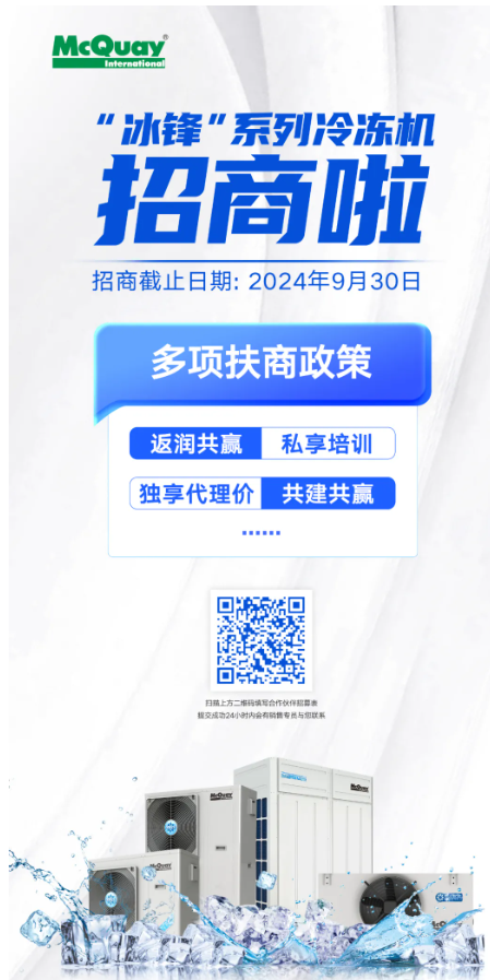 而今天,麦克维尔强势开启2024“冰锋”系列冷冻机全国新一轮招商活动!