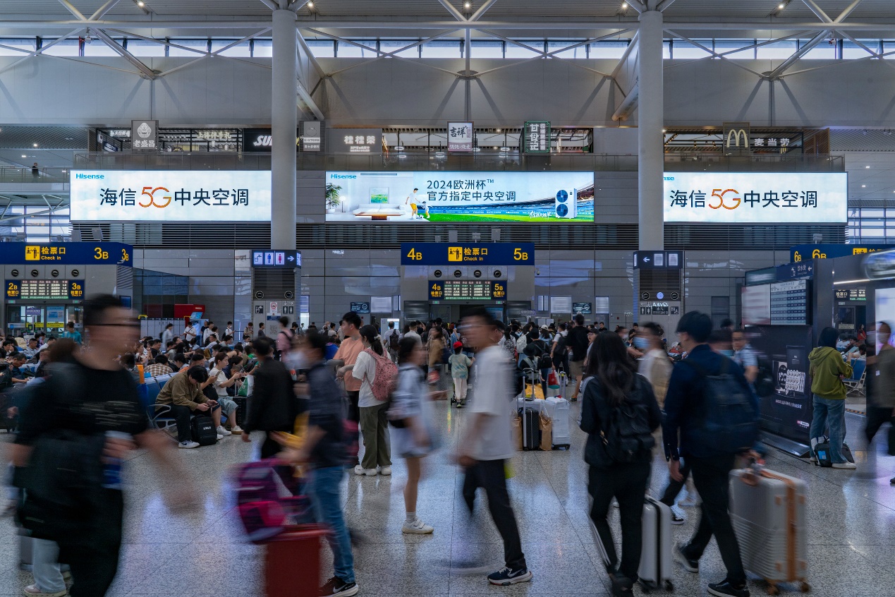 “遥遥领先”燃爆欧洲杯赛场,海信5G中央空调霸屏全国高铁站