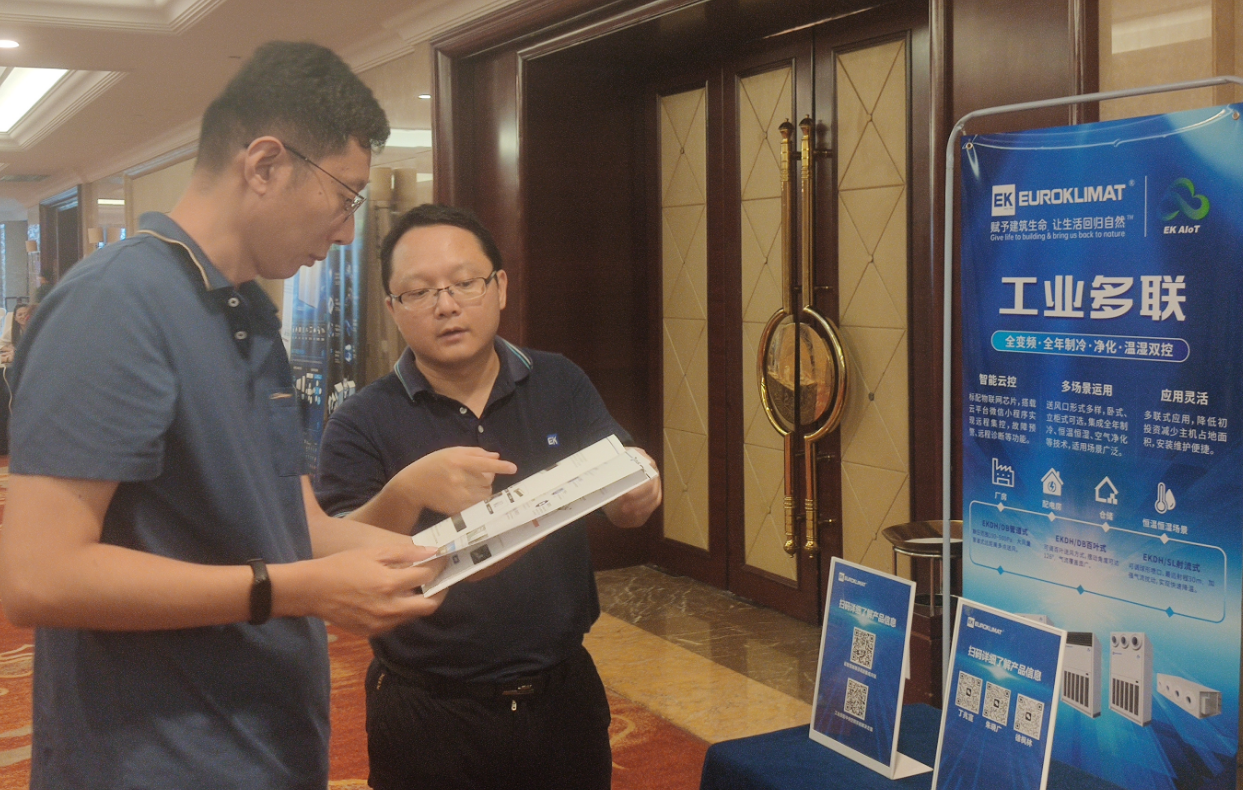 EK工业空调至今已拥有61年的发展历程,致力于提高能源利用效率和可再生能源应用,专注于节能低碳系统解决方案,全力支持工业制造降本增效、节能降耗,助力工业绿色低碳转型。交流会现场,EK工业空调特设展台与现场行业同仁深入交流,EK技术工程师向现场嘉宾详细介绍每款机组的性能、技术优势和在工业场景的实际应用,获得了一致好评。