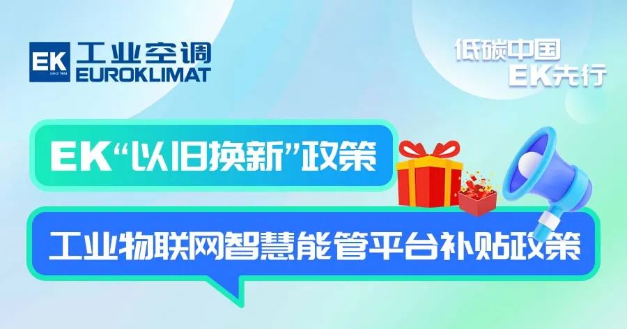 在政府提出的“以旧换新”和新质生产力政策指引下,EK工业空调面向各工业应用场景,提供节能改造方案和“以旧换新”政策补贴。