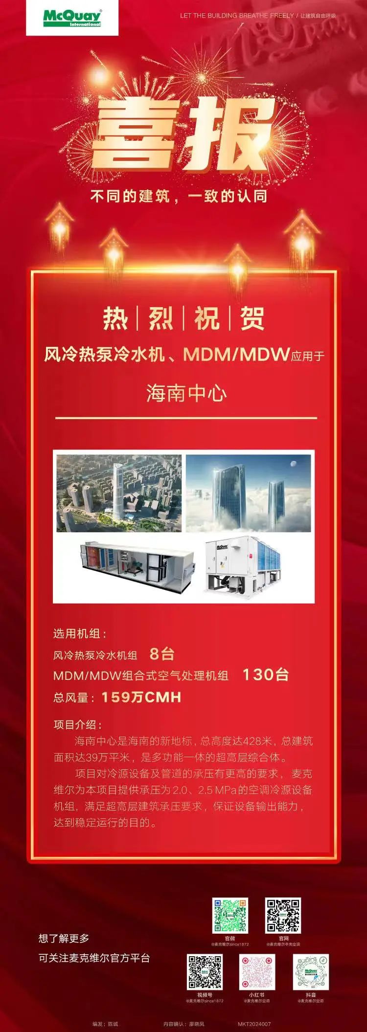喜报|海南中心选用麦克维尔空调-冷暖资讯-冷暖商情