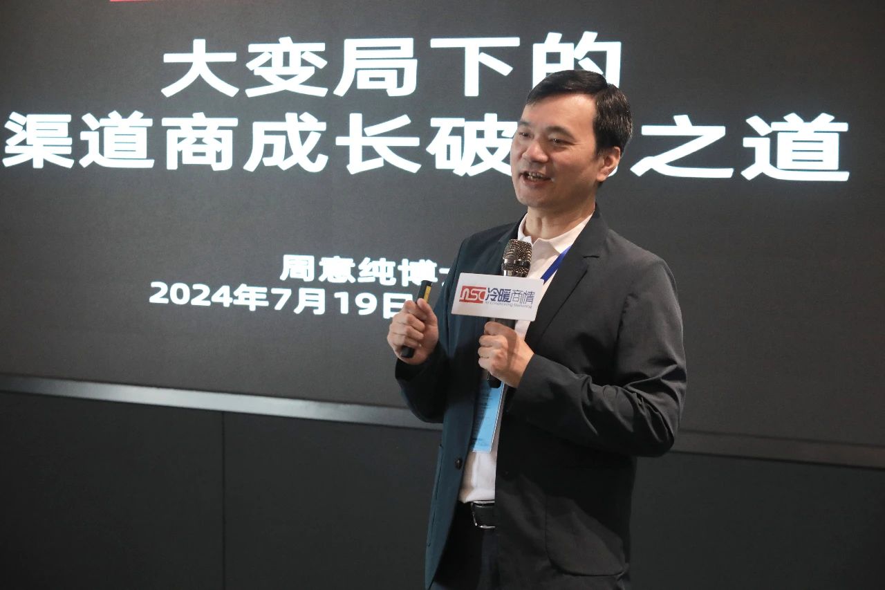 值得一提的是,本次交流会还特别邀请了资深战略营销专家周意纯博士以“大变局下的渠道商成长破局之道”的主题分享。他通过解读最新行业走势、玩法,为与会人员提供了宝贵的建议和指导。此外,在周意纯博士主持下,现场嘉宾围绕“对行业当下所处的周期环境是怎样看的?企业采取了一些什么措施?效果如何?有哪些经验教训?大变局下暖通行业渠道商的成长破局之道有哪些?下半年的保增长应怎么做?”等热点话题展开深入、热烈的讨论,共话最新的行业趋势、技术动态和市场机遇,为经销商的破局发展提供了可借鉴的新路径和新模式。
