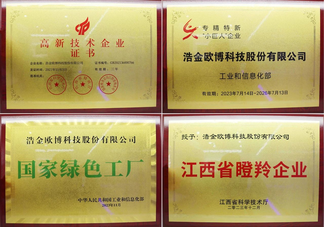 欧博人经过10多年的努力与经验积累,获得了大量的荣誉和证书,彰显着欧博的品牌力量!截止目前,欧博股份有限公司已荣获:国家高新技术企业,中国“冷标委”委员单位、国家级专精特新“小巨人”企业、国家级绿色工厂、江西名牌产品、江西省“瞪羚企业”等多项荣誉称号。