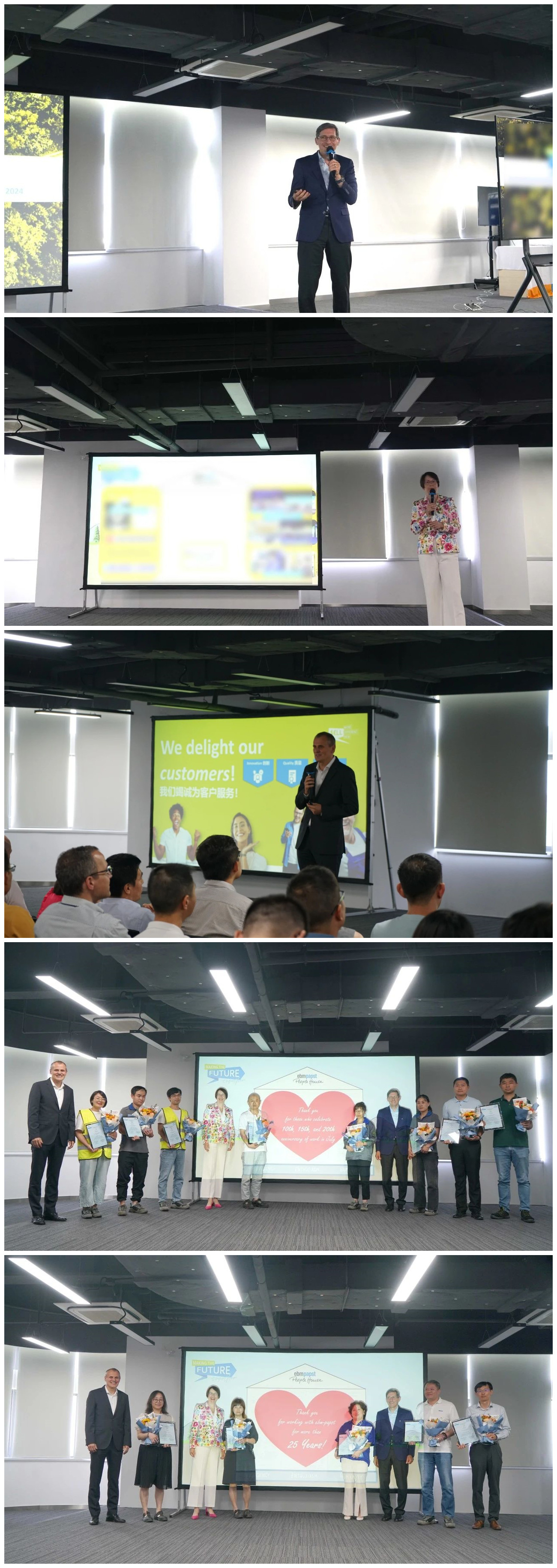 在分享集团战略的最新动态之余,管理层也为10年、15年、20年以及20年以上的员工颁发了“长期服务奖”,衷心感谢了他们对于公司在华28年发展历程中的持续贡献。员工是企业发展的根本,有了更强大的团队,进行更紧密地协作,我们才能实现“竭诚为客户服务”这一目标。