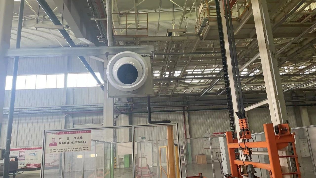车间原有钢结构设计承重有限,不宜额外增加超重设备,且内部龙门架/管线等设施多,无法铺设大风道,传统空调安装受限,岗位送风室内机尺寸小巧,占用厂房空间小,可灵活增减移机,更适合厂区安装改造。