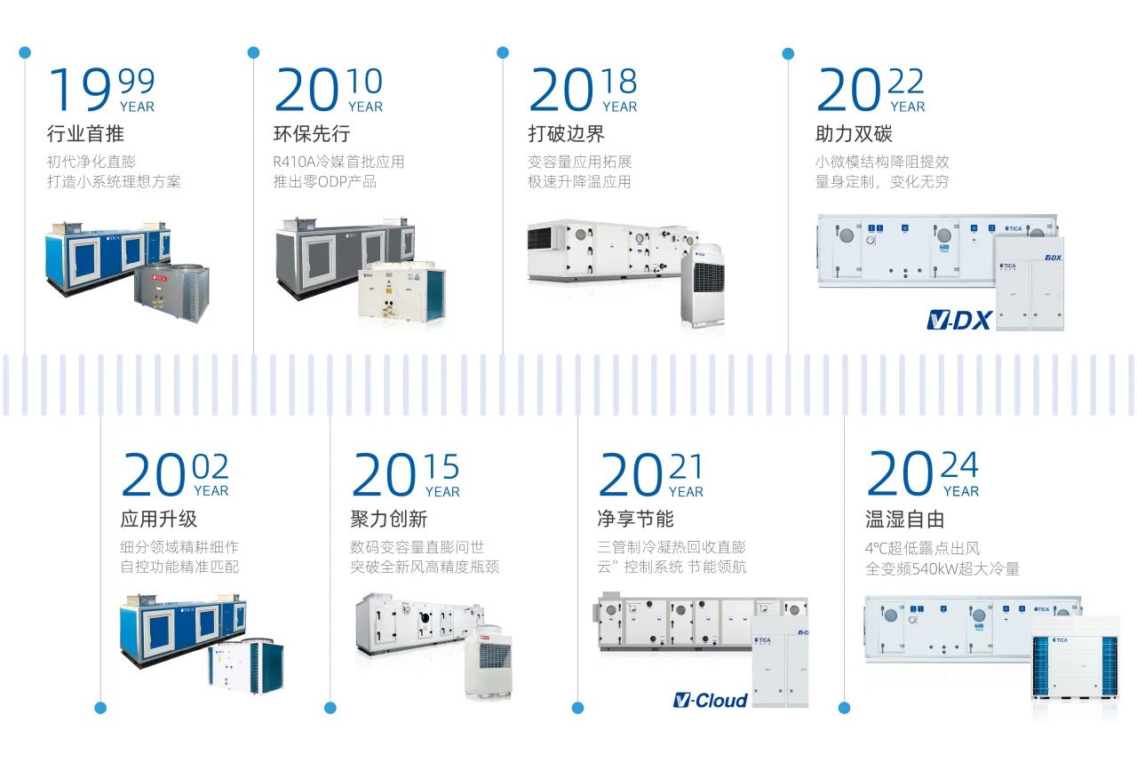作为直膨机行业首创者,天加从未停止精进,连续十四年市场占有率第一!天加于1999年全行业首推直膨机,专业打造小系统空气制程的理想解决方案;2015年推出数码变容量直膨机突破全新风高精度瓶颈;2021年推出三管制冷凝热回收直膨机搭载“云”控制系统,实现节能领航。2022年室内机整体做小微模结构设计降阻提效最高达10%,为双碳助力。2024年全新直膨机的问世,更标志着天加直膨机成为当之无愧的引领者。
