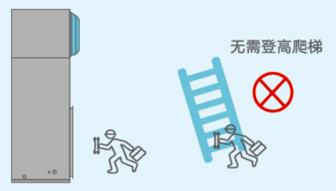 传统空调安装需要在墙上钻孔或安装支架,麦克维尔机组可直接落地靠墙安装,可以随时移动和更换位置,灵活性强,无需吊顶,可侧面检修接管,安装和维护更便利。