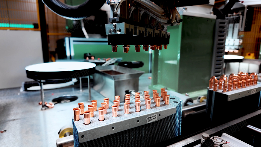 如,行业首个无人化“两器”黑灯生产车间,通过视觉系统结合算法分析自动纠偏,机器人柔性生产结合“子弹头”机械引导,实现了全工序自动化,质效双升。此外,多点焊接、不等加热、高精度视觉引导和参数补偿方案等自研技术,也在自动化焊接环节大放异彩,用工提效63%,焊接不良率下降57%。物流环节的创新同样令人瞩目,空中物流即时配送系统的引入,极大地提高了物流质效。