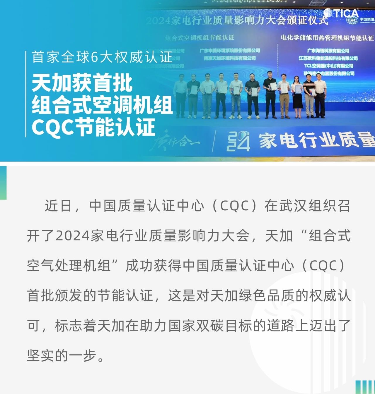 重磅!天加获首批“组合式空调机组CQC节能认证”!