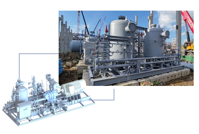 ❖单套机组可处理一级进气和二级补气共21.4万吨/年不同压力的丙烯气体,设计蒸发温度-40℃,满足项目特殊工艺低温要求。