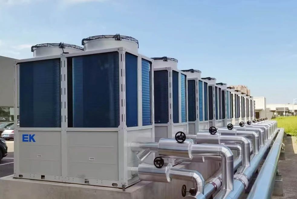 项目采用EK变频低温风冷热泵为办公楼、生产车间提供冷热需求。机组超一级能效,可为业主节约很大一部分电能费用。