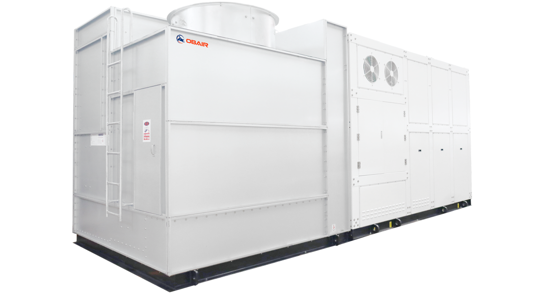 欧博一体化蒸发冷却式螺杆冷水机组将传统水冷冷水机组、冷却水与冷冻水输送单元、定压补水装置等进行功能的深度整合,并采用冷却效率较高的蒸发式冷凝器及自主开发的智能化控制系统,是一种可直接替换常规空调机房、置于框架内的的机房系统。机组具有高效节能(机组能效优于GB19577-2015一级能效规定)、安装简便、易维护使用、智能控制的等点。