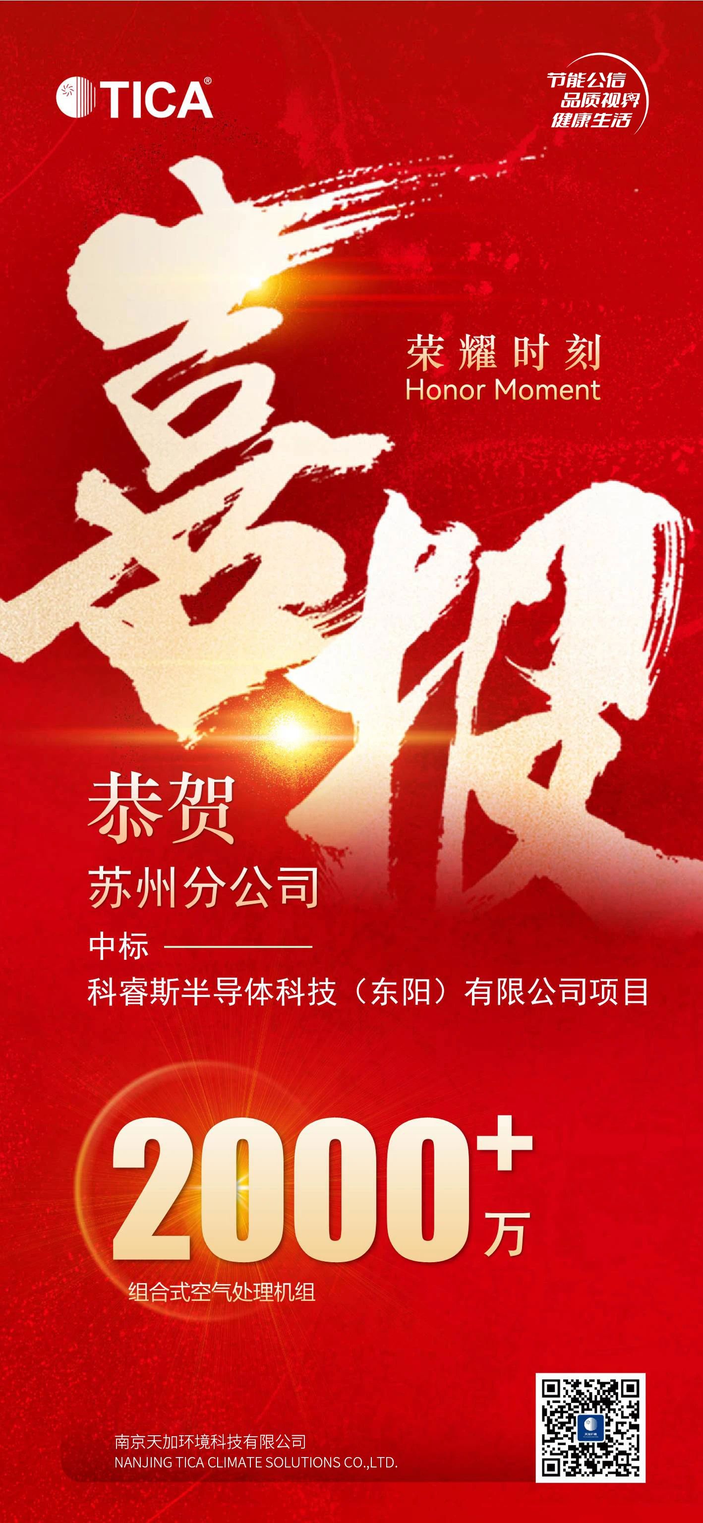喜报丨天加苏州分公司中标科睿斯半导体科技(东阳) 有限公司项目