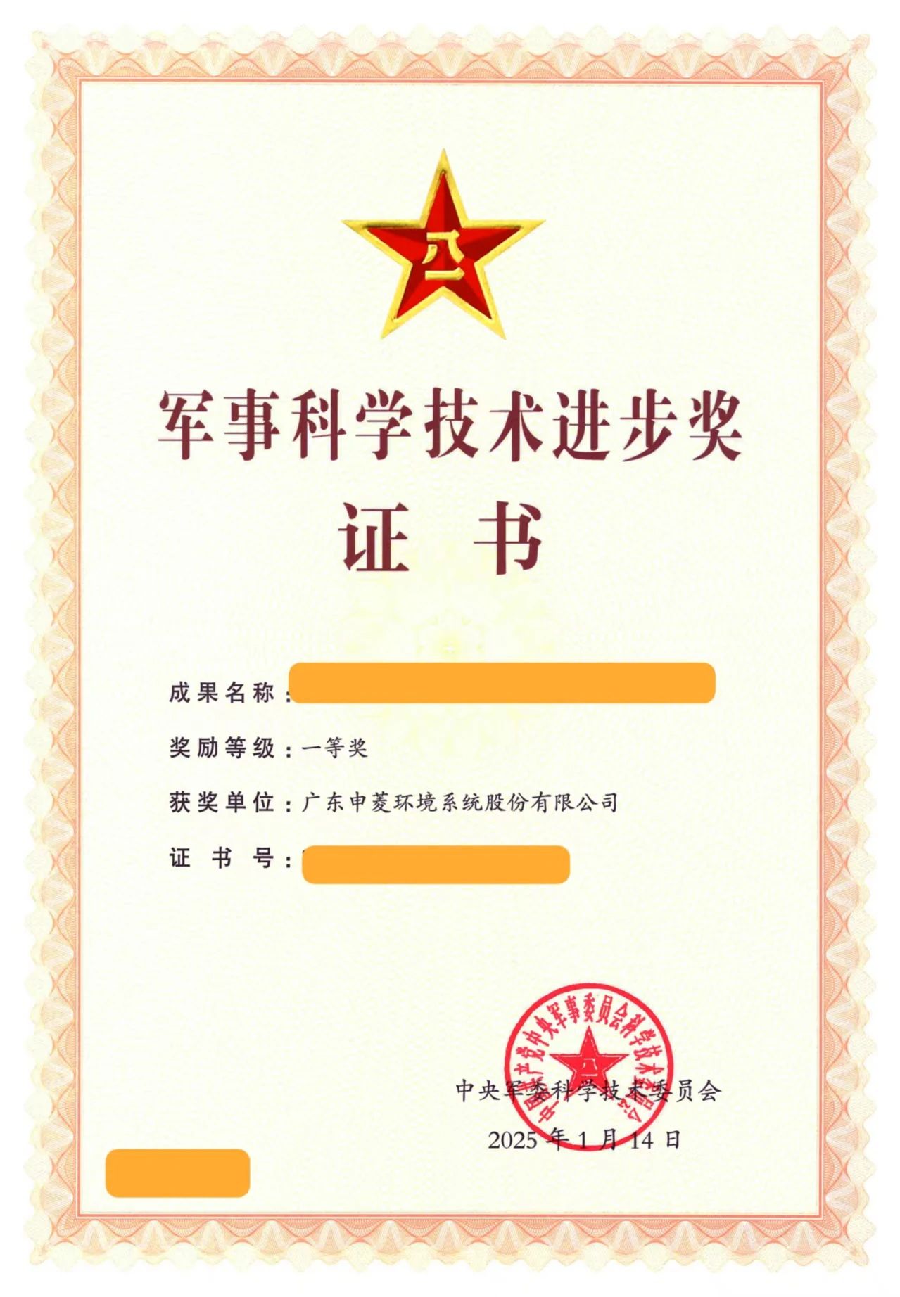 近日,广东申菱环境系统股份有限公司凭借在特种环境控制领域的创新技术突破,荣获2025年度军事科学技术进步奖一等奖!