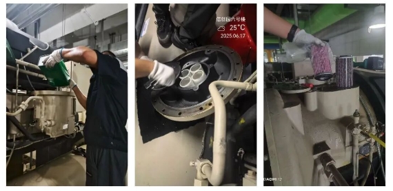 其麦克维尔大型中央空调机组运行多年。近几年,客户选择第三方进行保养。麦克维尔广州售后团队在回访过程中,凭借专业服务经验,发现了压缩机的运行异样。于是建议客户对润滑油状态进行取样,麦克维尔对其进行免费分析、诊断(VAS项目),精准评估油品性能。
