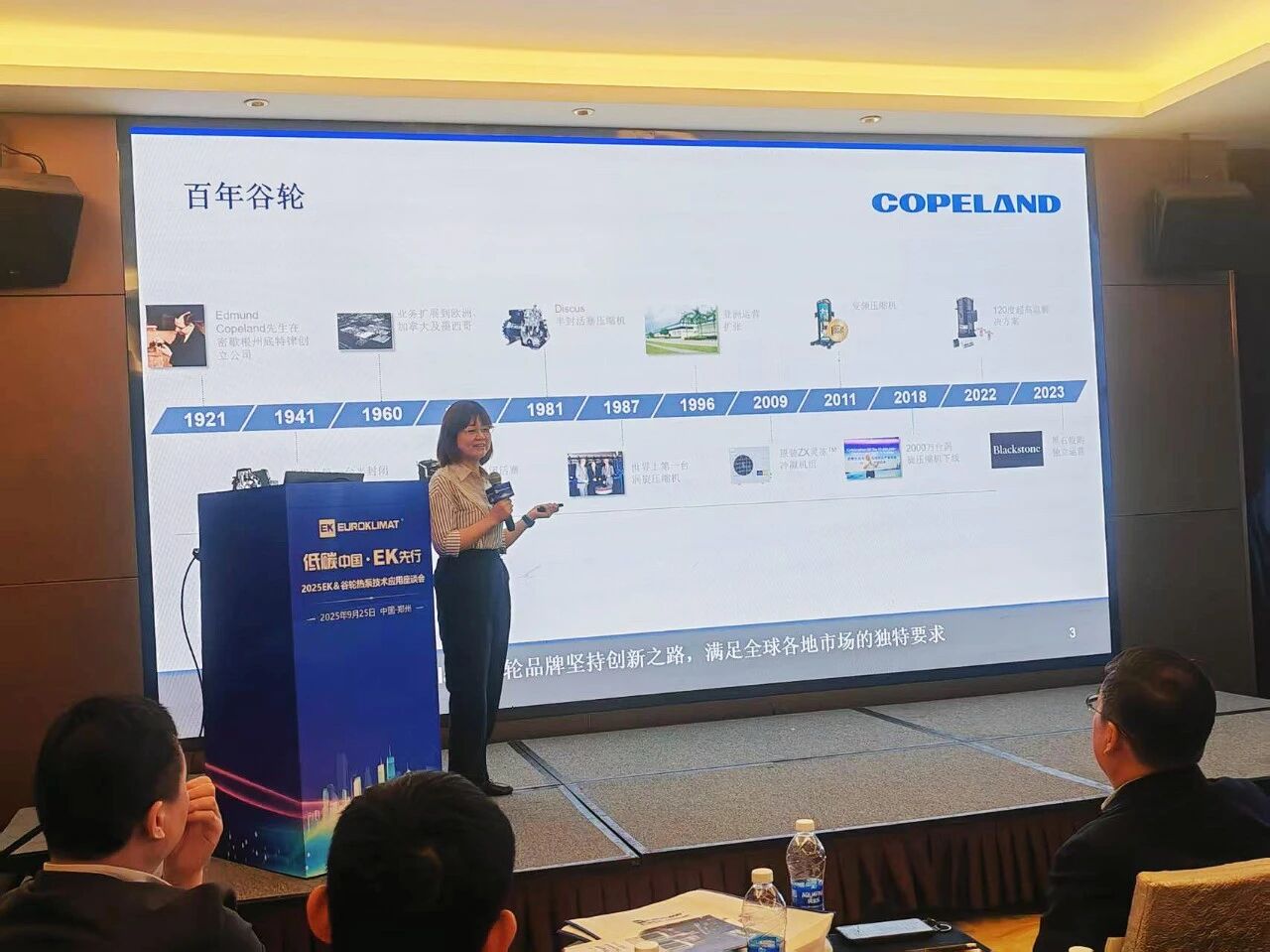 EK 国际战略合作伙伴——谷轮的市场部经理康静,也在会上带来谷轮低温产品技术介绍。作为空调系统的“心脏”,谷轮压缩机的技术突破,进一步提升EK热泵机组在极寒条件下的性能与稳定性。