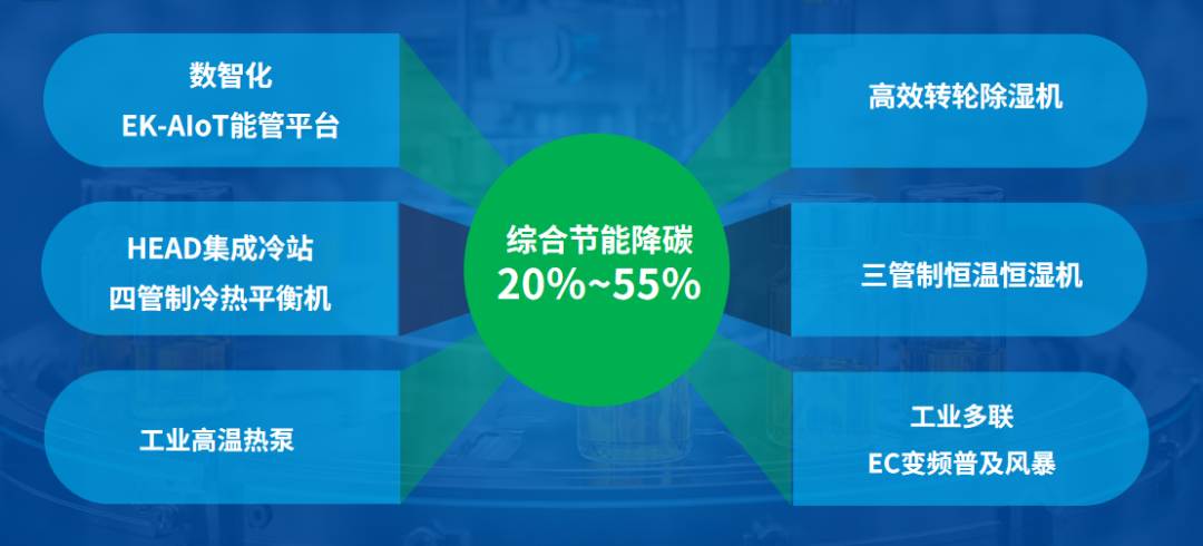 依托在工业热泵领域深厚的技术积淀,EK工业空调推出低碳热源节能降碳路线,致力于为制药企业提供专业化、定制化的热源方案,助力药企在保障生产工艺的同时,实现节能降碳目标。