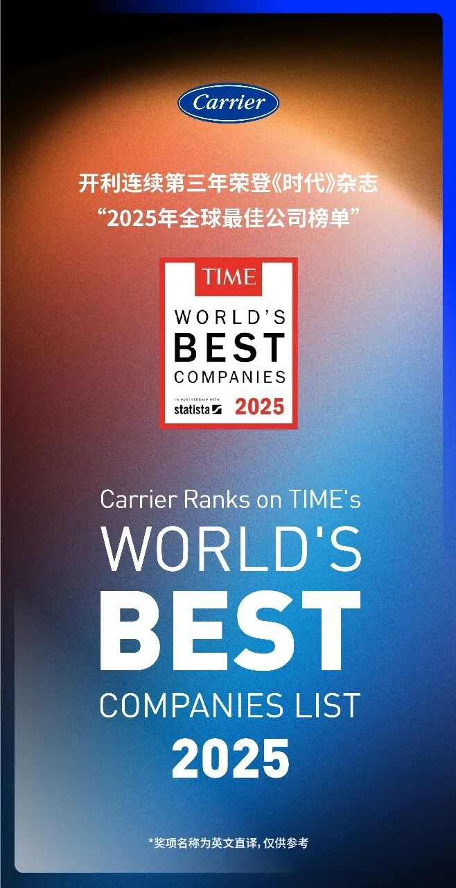 开利连续第三年荣登《时代》杂志“全球最佳公司”榜单!