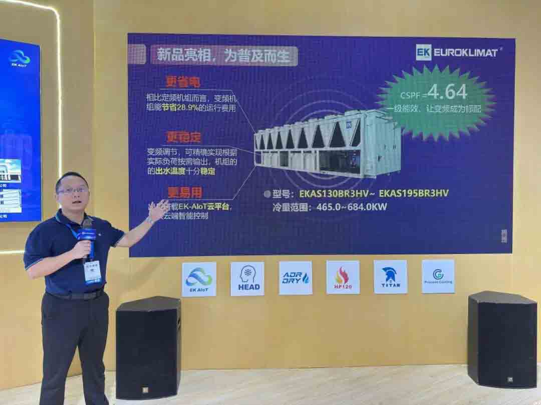 EK工业冷热源系统事业部产品经理朱晓广现场主持新品发布会并做方案介绍。