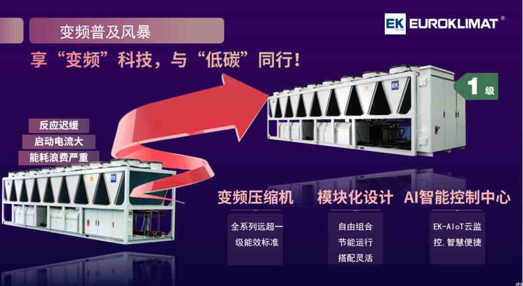 当前,变频技术已从一项“高端选项”,演变为企业绿色竞争力的“基础标配”。EK工业空调依托在“变频”技术上的深厚技术积累,持续更新迭代绿色产品方案,先后多次发起变频普及风暴行动,致力于将高效、可靠的变频技术带入更多实际应用场景。