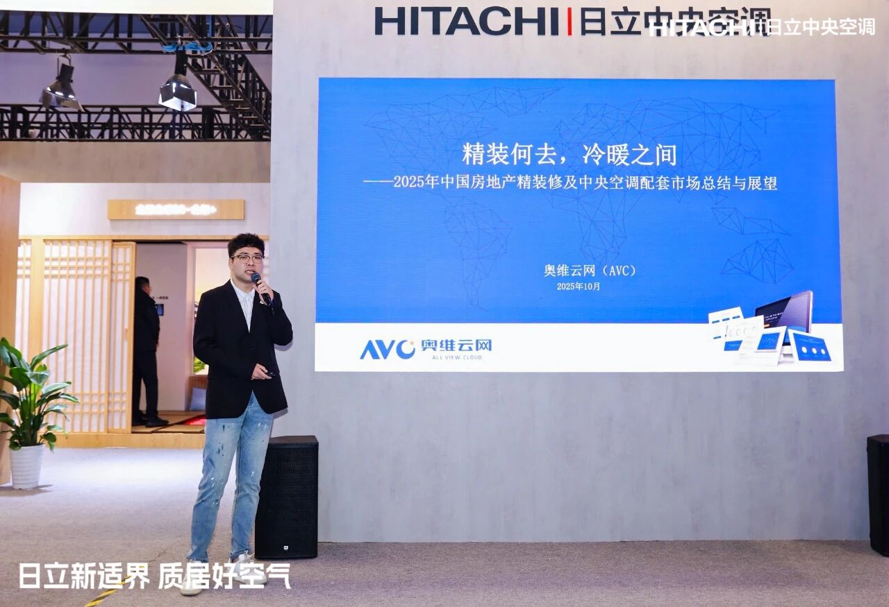 奥维云网地产产业链研究总监张冉详细分享了2025年中国房地产精装修及中央空调配套市场现状与发展趋势。在精装修市场全面迈向以品质化、系统化、服务化为特征的新发展周期之下,日立凭借领先的技术优势与强大的品牌影响力,持续占据领先地位。