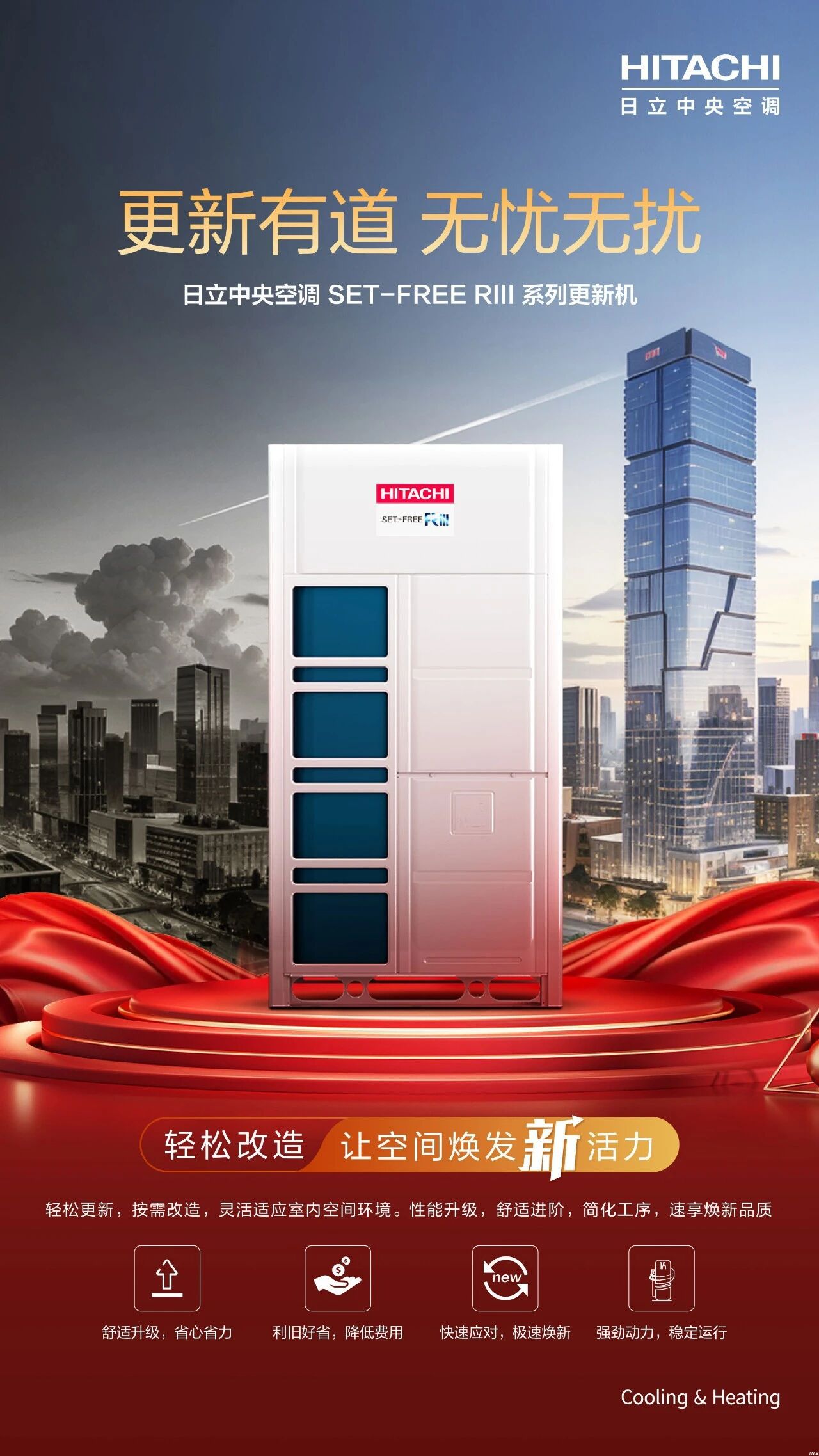百年日立,始终以创新为引擎,积极回应社会课题。其中,以“更新有道,荣耀焕新”为理念,日立SET-FREE RIII更新系列顶出风多联机,凭借硬核科技实力,集强劲动力、舒适体验、成本优化与极速安装等优势于一体,为建筑改造提供高效节能的解决方案。该系列产品亦将隆重亮相,带来日立在绿色低碳领域的深刻思考与实践成果。