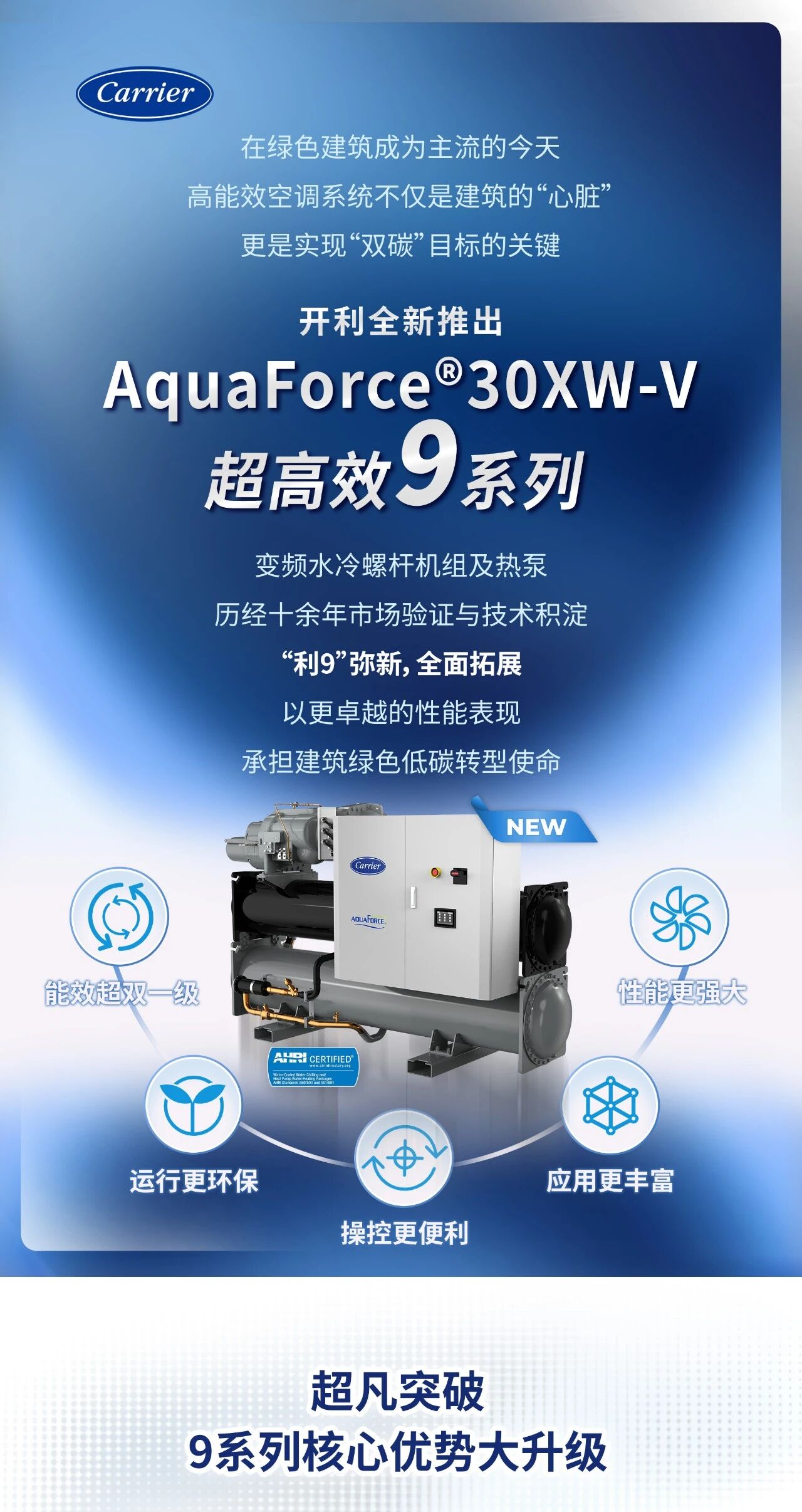 开利产品 | “利9”弥新,AquaForce®30XW-V超高效9系列重磅升级