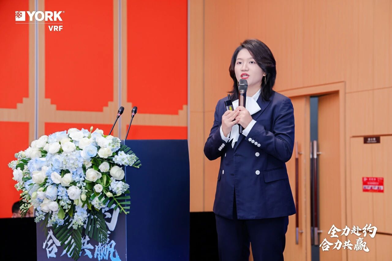 约克VRF中小项目主管唐玉娇全面复盘了过往协作成果,并详细分享了全新开盘政策,为市场拓展提供清晰路线图。此外,约克VRF还将为合作伙伴精准提供项目信息、设计支持与谈单辅助,直击成单痛点;同时依托合作机制,配套安装支持、服务体系与联合推广资源,强化渠道本地化运营能力,共同开拓市场新蓝海。