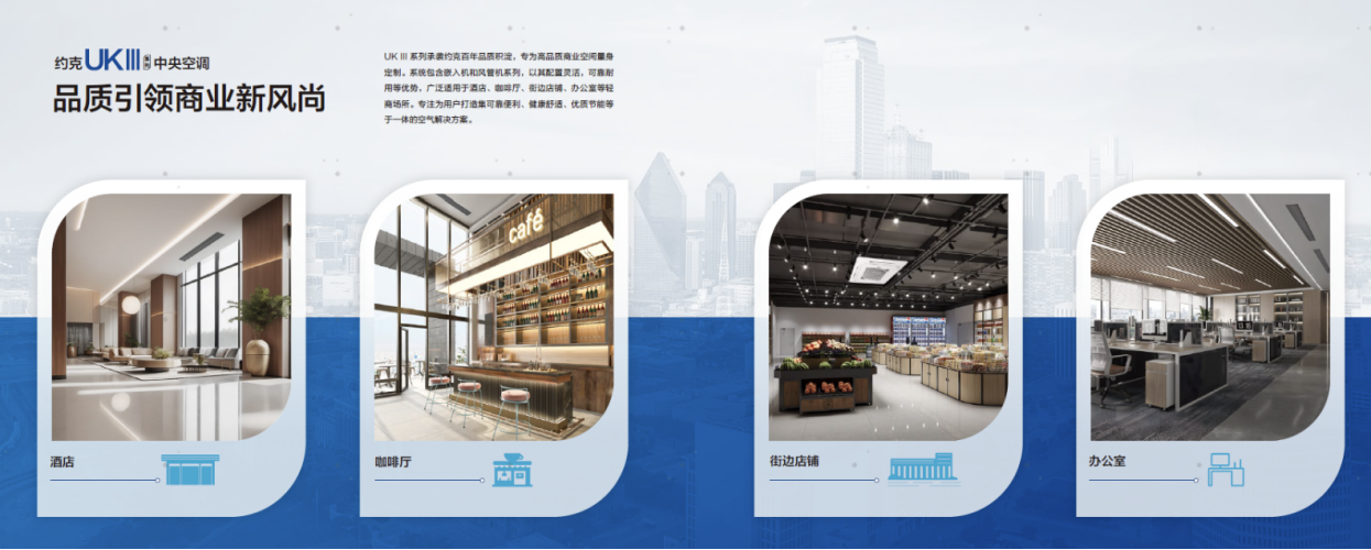 产品是夯实市场竞争力的永续核心。此次会议期间,约克VRF旗下多场景产品解决方案重磅亮相。其中,约克UK III系列作为主推产品备受关注。该系列承载约克百年品质积淀,专为高品质商业空间量身定制,包含嵌入机和风管机系列,具备配置灵活、可靠耐用、高效节能等核心优势,可广泛适用于酒店、咖啡厅、街边店铺、办公室等轻商场所,不仅能提供可靠的温度调控支持,更能助力用户实现绿色低碳运营,为打造标杆解决方案赋予有力支撑。