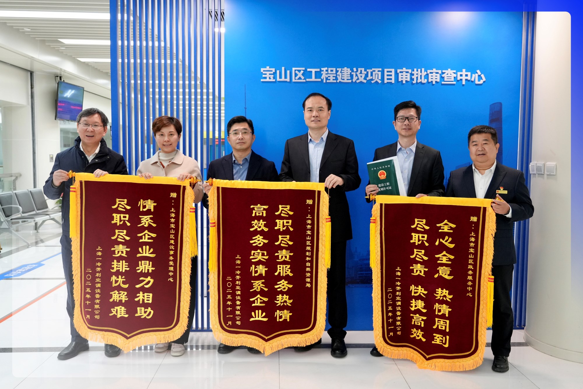 12月10日,在宝山区政务服务中心“宝你荟”帮办窗口,宝山区区长邓小冬为开利空调CARS工厂生产基地一冷机组智能化工厂新建项目正式颁发《规划设计方案批复》《建设工程规划许可证》与《建筑工程施工许可证》三份关键证照。这次“三证齐发”标志着项目已完成开工前所有审批手续,得益于宝山区政府的创新服务模式与开利的高效运营,政企携手为项目快速实施创造了有利条件,加速推动开利在中国建设其首家智能制造“灯塔工厂”计划的落地进程。