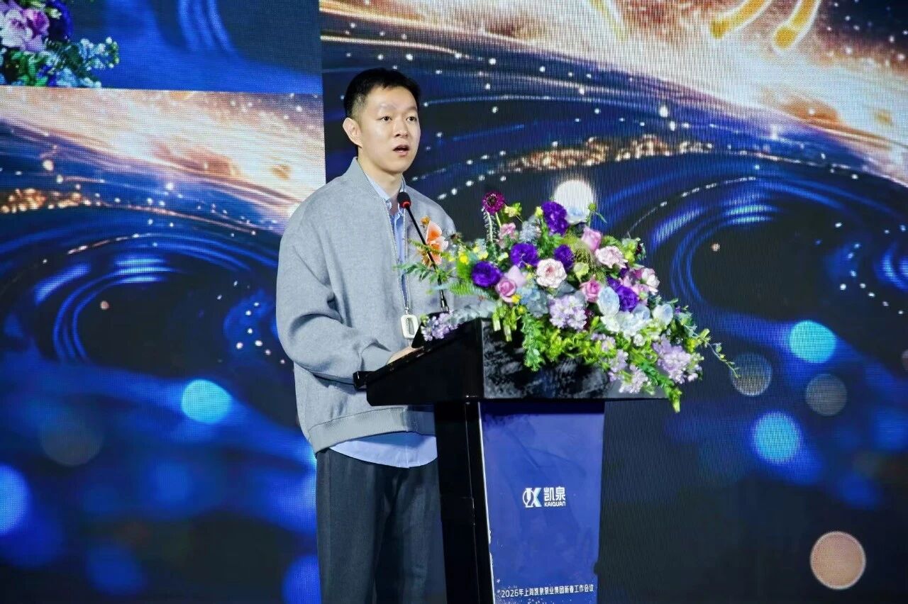 会上还对 2025 年度表现突出的先进个人与集体进行隆重表彰,先后颁发数十个奖项,同时邀请四位获奖代表依次上台分享心得,多角度展现了凯泉人实干担当、奋勇争先的精神风貌,为全体同仁树立了学习榜样。