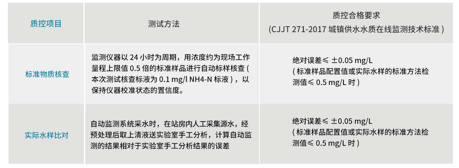 氨气敏电极法的A111 Pro在线分析仪准确性和稳定性较高,抗浊度和色度干扰能力较强,在标准物质核查测试和实际水样比对中合格率100%,优于CJJT 271-2017城镇供水水质在线监测技术标准中的质控要求,适用于饮用水监测。