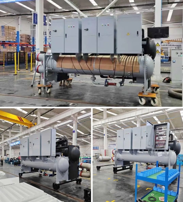测试台上,专为储能电池客户定制的一体式自然冷却型风冷螺杆冷水机组正在模拟极端工况下的运行数据;实验室里,技术人员正加紧对气悬浮变频离心式冷水机组进行新一轮性能测试。