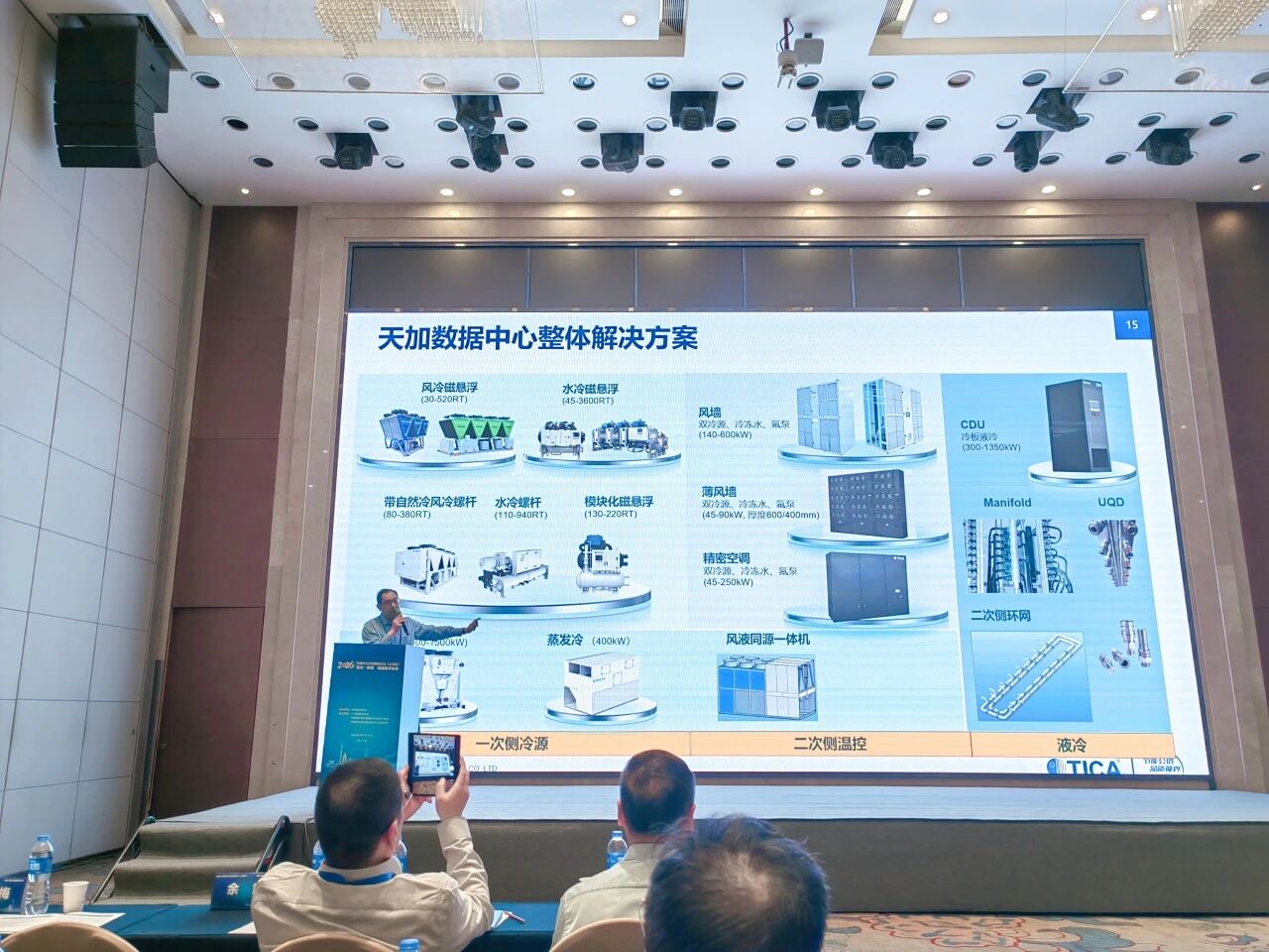余总围绕行业痛点与双碳目标,重点阐述天加风液同源、全场景适配、AI智控优化的核心思路,依托双盘管DX冷却、磁悬浮高效主机、液冷CDU、风液融合系统及OPTSEEK智慧物联平台,实现从设备到系统、从建设到运维的全生命周期能效最优,助力客户同步达成低PUE、低WUE双目标,兼顾节能与节水,适配南方湿热气候与高密度算力场景。