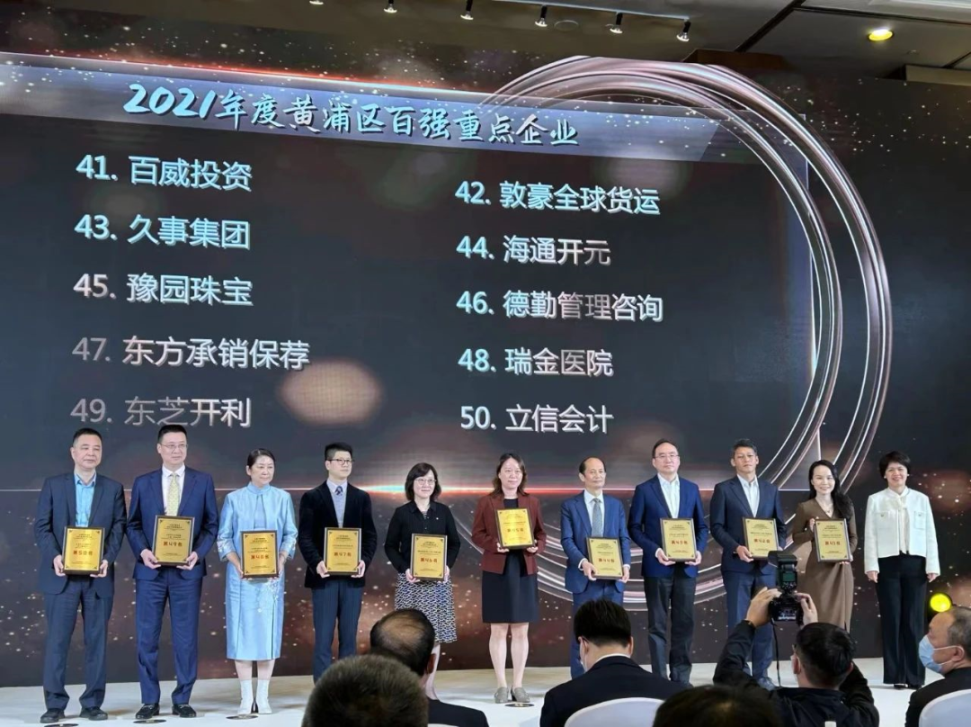 会议表彰了2021年度对黄浦区经济发展贡献突出的前100强企业,东芝开利空调销售(上海)有限公司跻身前五十名,在百强名单中列第49位。