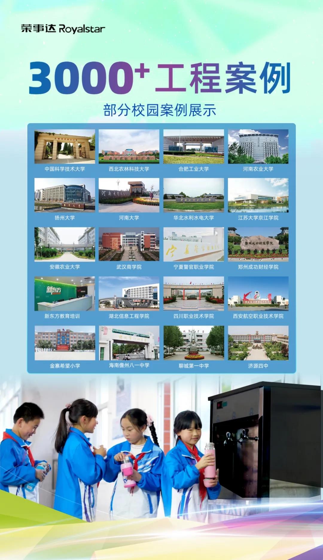 随着现代化教育的全面推进,荣事达将人性化设计作为产品设计准则,充分发挥自身技术、产品、质量、服务等多方优势,为小朋友提供综合智能饮水服务方案,让更多祖国的花朵拥有健康安全的饮水体验,用心“喝”护健康茁壮成长!