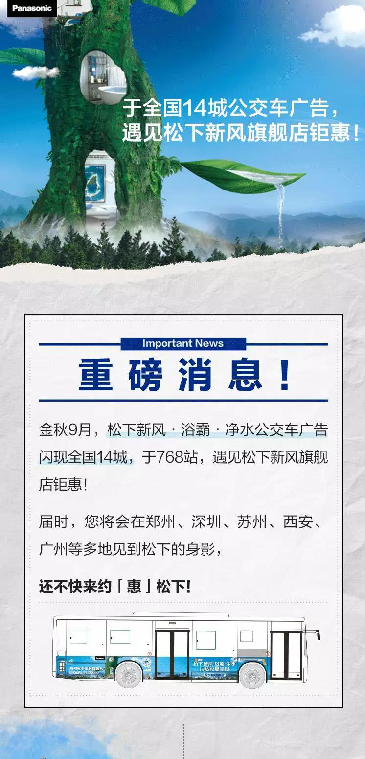 于全国14城公交车广告,遇见松下新风旗舰店钜惠!