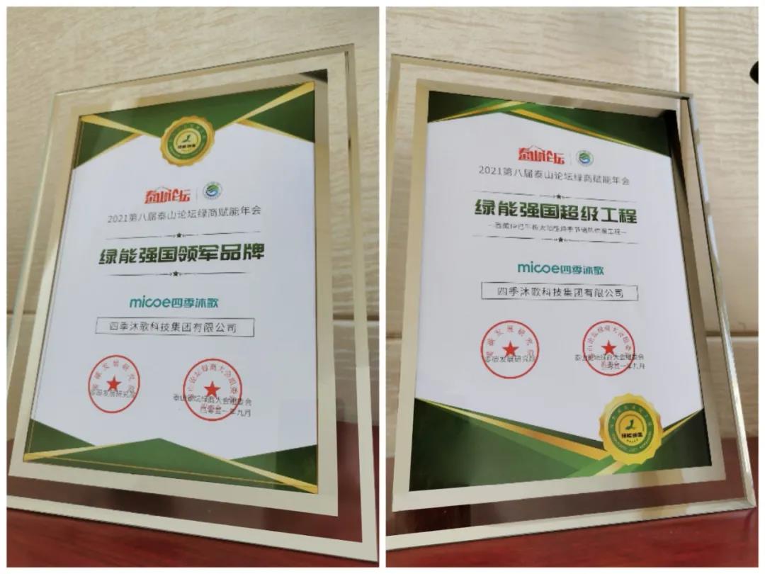四季沐歌闪耀2021泰山夜话,斩获泰山论坛绿能强国两项大奖
