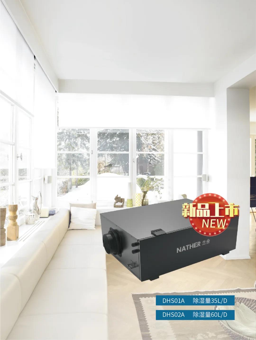 兰舍Refresh系列DHS02A除湿机风量达500m³/h,无论是高档别墅,超大地下室都适用;霉菌细菌减少,空气干爽健康;