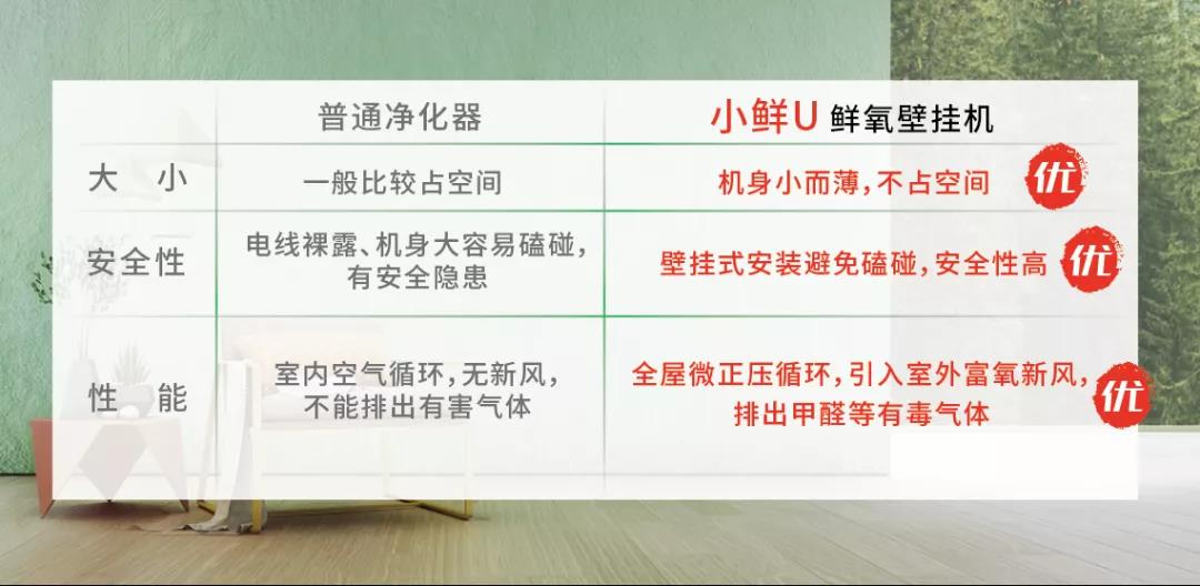 小鲜U 鲜氧壁挂机,身材如低龄儿童书包大小,机身特薄,而且是壁挂式设计,像挂在墙上的一个小小书包,避免孩子磕碰、抽拔电线及探索机器时危险的发生,更不用担心被躺在地上电线绊倒。
