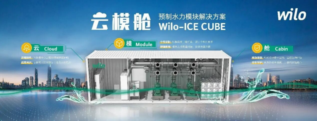 以当下火热的数据中心冷却市场为例,威乐北京基地针对传统水力系统痛点开发了Wilo-Ice Cube “云模舱”预制化水力模块解决方案。肖伦强调,该方案以集装箱式模块化设计为核心,整合水泵、电机、控制系统、空调、安防等核心组件,实现“工厂预制、快速交付、即插即用”,显著缩短了建设周期,通过智能云平台实时监控,系统能效提升近30%以上的同时,还可实现机房面积节省20%及缩短交付时间40%等诸多优势,赢得了客户的高度认可,更凭借这些优势成功斩获阿里云数据中心大体量订单。